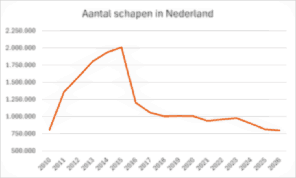 Het aantal schapen en schapenhouders in Nederland blijft dalen. Een licht positief puntje: de daling in het afgelopen jaar verliep iets minder hard dan de daling in de twee jaren daarvoor. Dat blijkt uit de nieuwste I&R-cijfers van de RVO per 1 januari 2026. Dat neemt niet weg dat het aantal schapen in Nederland in de afgelopen drie jaar stevig is afgenomen en nu onder de 800.000 dieren schiet. Ook het aantal schapenhouders loopt terug.