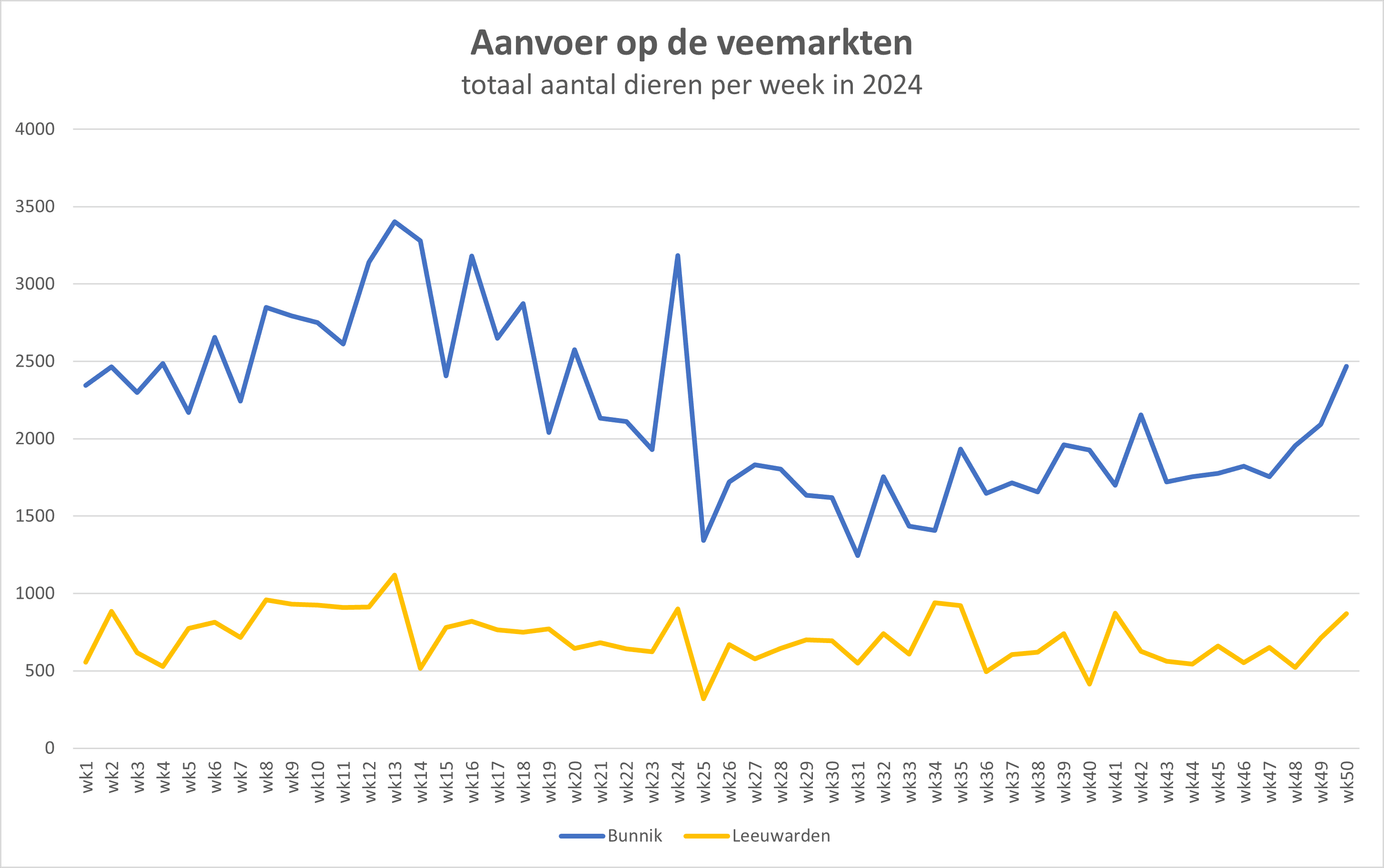 Aanvoer: 2.468 een – opnieuw aanvoer, van stijging opzichte eerder. met 374 een week dieren dieren in ten