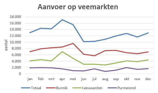 in een Per aanvoer verhandeld dieren. van een werd maand maandgemiddelde met aanvoer 17.056 april, op maand lag meest bekeken het juni, 12.905. rustigste 10.151 De van Het was er met dieren.