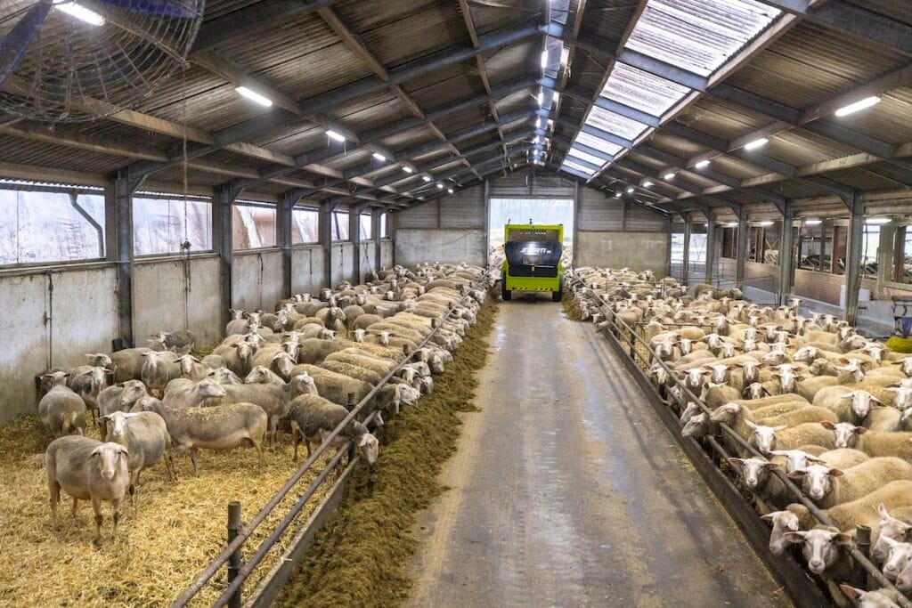 Groot Zwaaftink plant een groot voerplein voor snelle en efficiënte voertoediening. Momenteel gebruikt hij een mini-shovel in de tenten waar de schapen staan. Hij voert een mengsel van kuilgras, soja en actief meel, zonder brok om selectief eten te voorkomen. De mengvoerwagen zorgt ervoor dat het voer goed gemengd en fijngesneden wordt. De productie is gemiddeld 435 liter per schaap per jaar, met drie aflamperiodes per jaar om een constante melkstroom te garanderen.