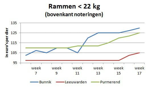 De marktprijzen voor ooien en rammen gelden voor het slachtgewicht per dier.