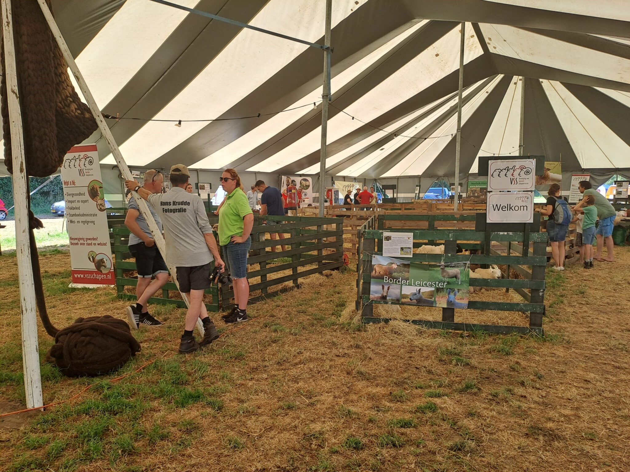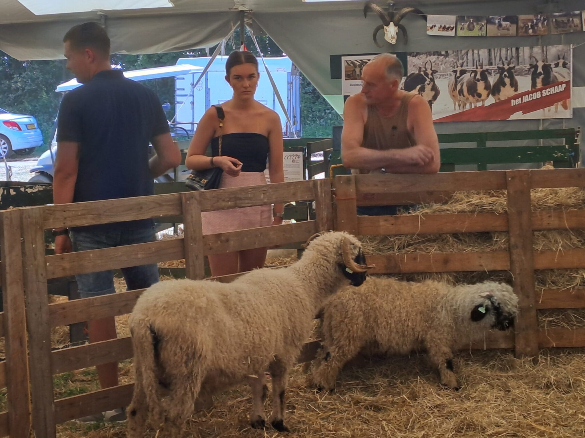 Johan: “Het voordeel van deze grote tent is dat alles in de schaduw staat. De NVWA is geweest om te controleren en alles was gelukkig ok. Genoeg water voor ieder dier en de dieren in goede gezondheid, dat is het belangrijkste. Gelukkig was er zondag in die hitte wel iets een windje. Uiteraard is er altijd dierenarts aanwezig. Alle schapen zijn Q-koorts geënt en zwoegervrij, daar zitten we bovenop, ik controleer alles persoonlijk met alle nummers op schapenkeuring.nl”