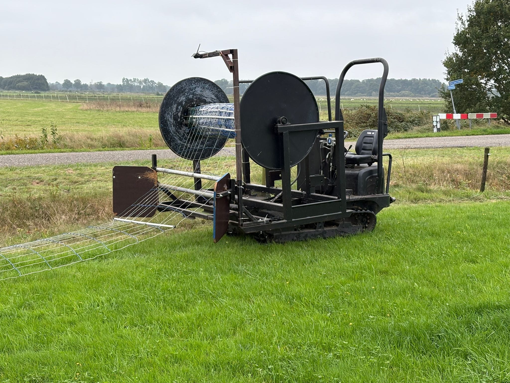 De schapenhouder heeft zijn fokschapen inmiddels achter netten van 145 cm hoog. Hij plaatst deze netten met een eigen machine. Worst: “We kunnen hiermee nu voor onszelf en anderen wolfwerende netten in alle hoogtematen snel plaatsen, verplaatsen of opruimen zonder de zware netten te hoeven tillen en verslepen. Ook in nattere omstandigheden.”