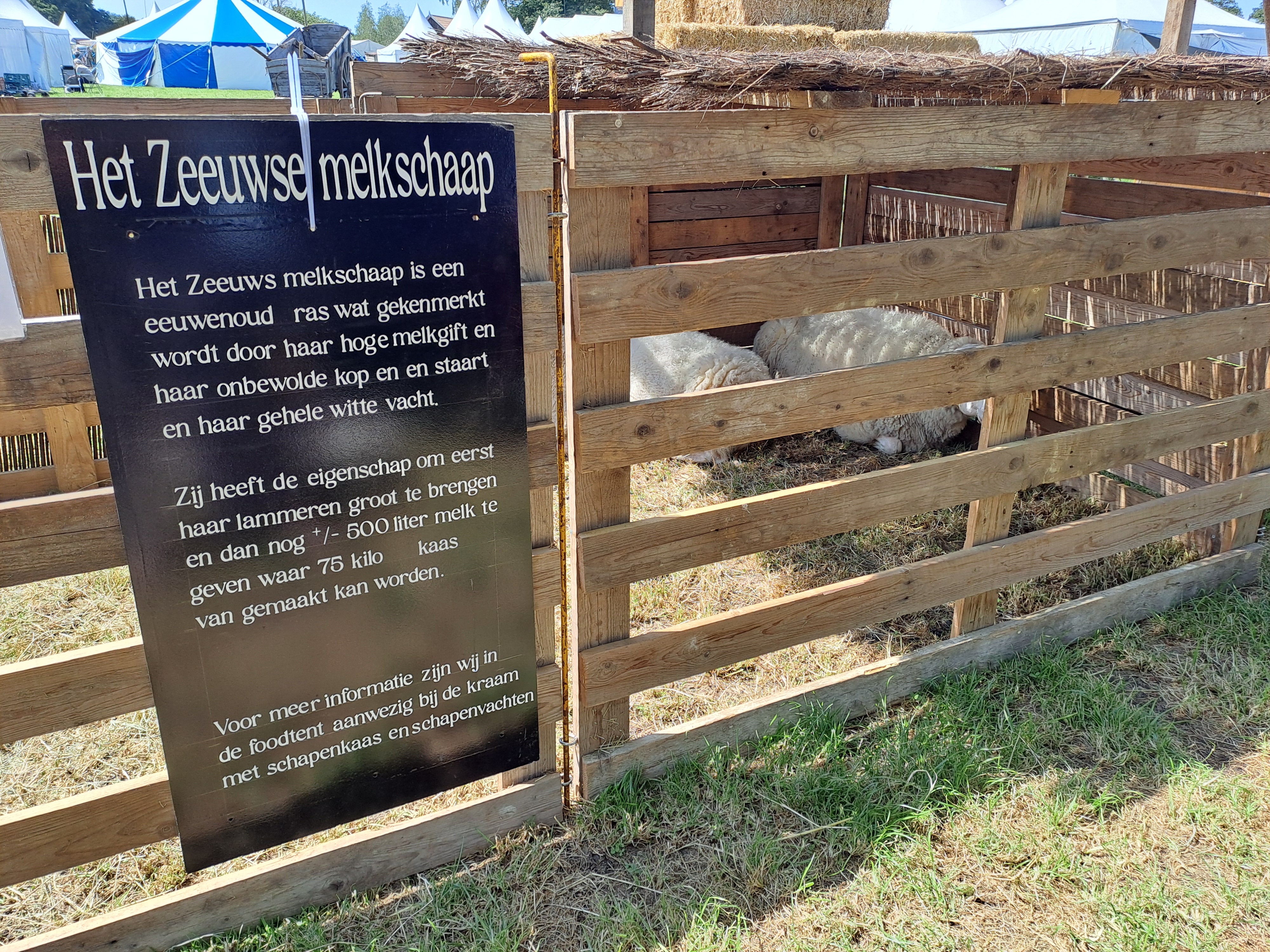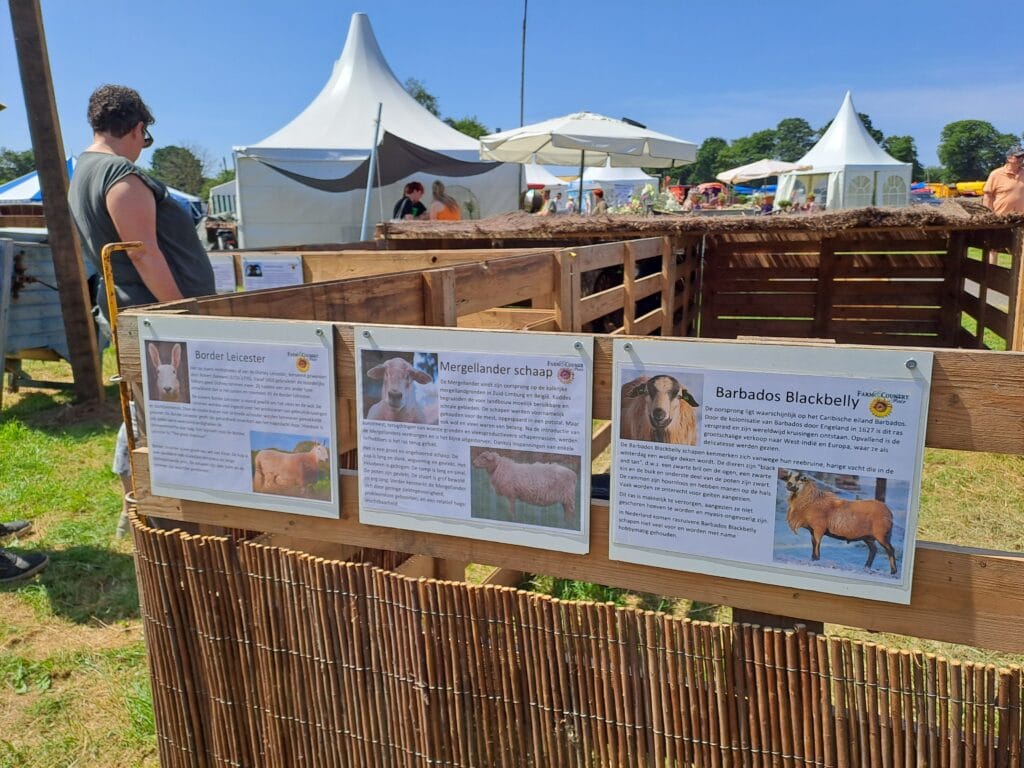 Bij diverse rassen hangt informatie over het schapenras maar dat is lang niet overal. De A4’tjes met rasbenamingen zitten soms met plakband op de hekken. Rutte: “Ja, dat hadden ook bordjes met informatie kunnen zijn. Daar kunnen we nog wel wat in verbeteren samen, de bezoekers nog meer en beter informeren. De één kan en doet dat beter dan de ander. Misschien een idee om dat eens samen op te pakken? Al hou ik er zelf ook wel weer van om het persoonlijke gesprek aan te gaan, dat werkt het best.”
