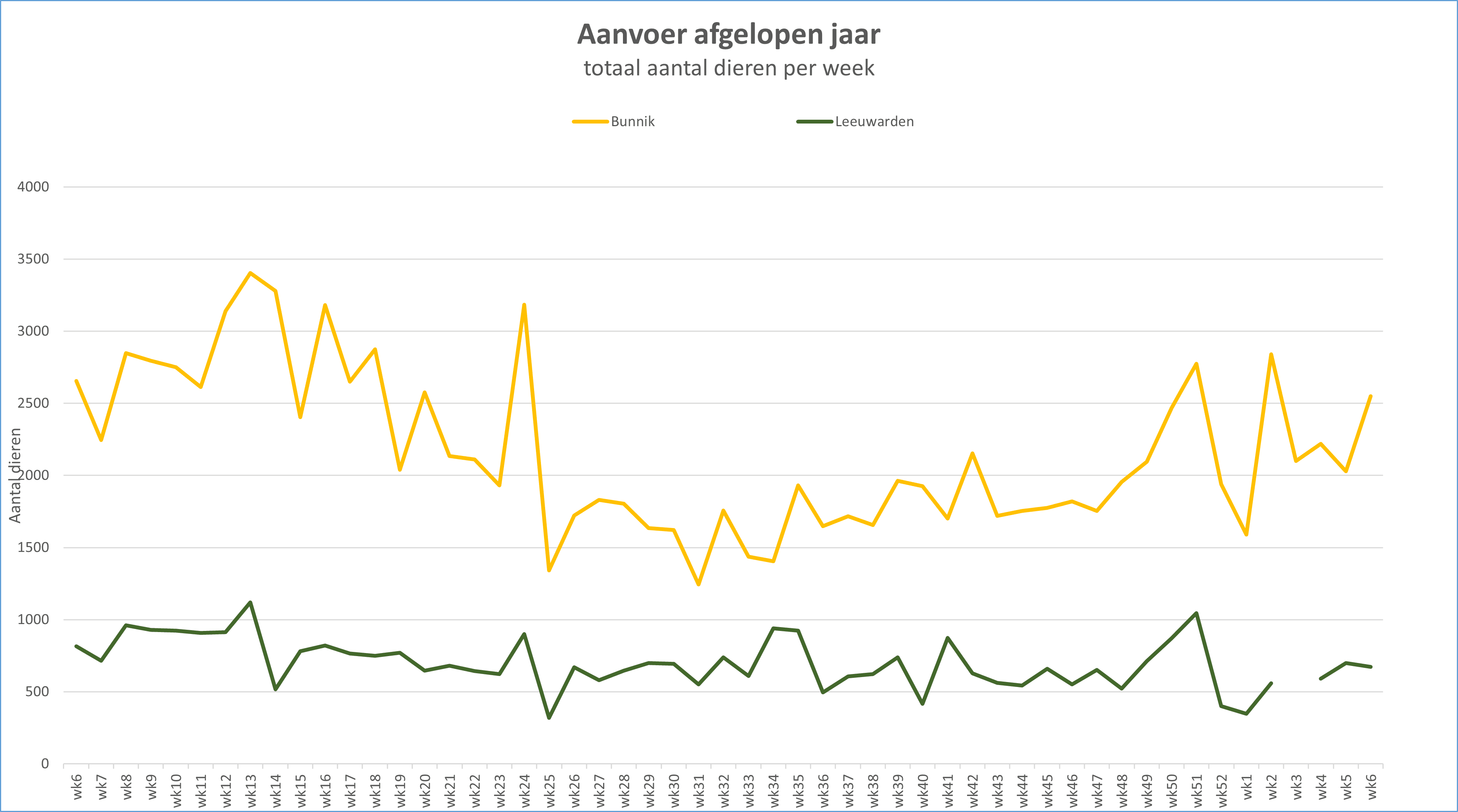 672 dieren, zijn 26 dat eerder. week dan Aanvoer: er een minder