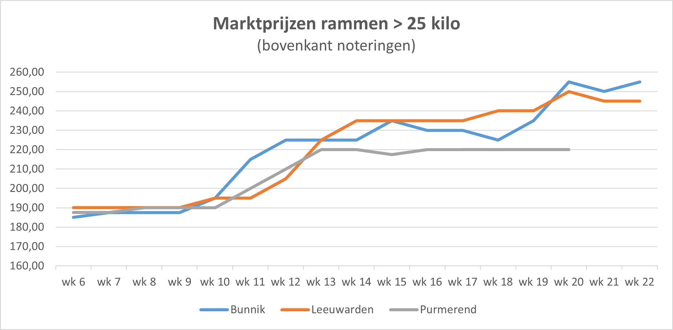 Stabiele mooie prijzen; alleen rammenprijs Bunnik stijgt [week 22]