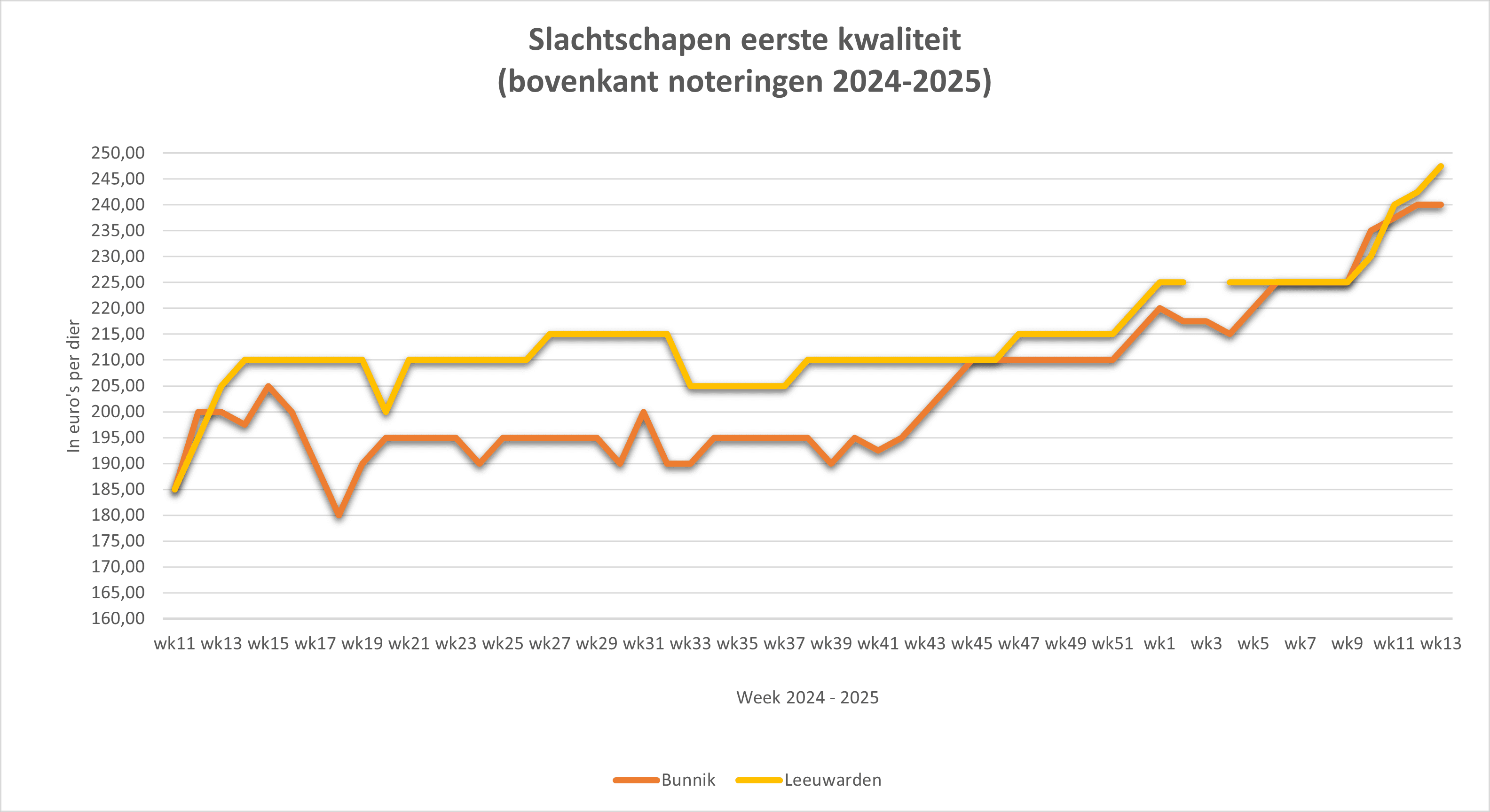 tot Eerste kwaliteit: €125 Tweede (+€5). €75 tot €185 Slachtschapen: €210 (+€5). Derde €190 €125 tot kwaliteit kwaliteit: (+€5)