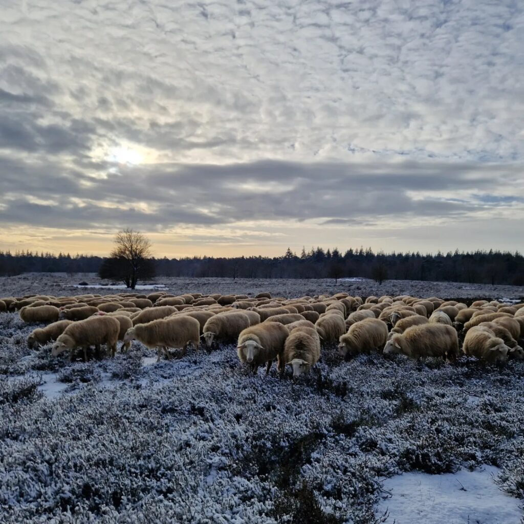 Winters beeld op de hei. Nog ruim een week en dan begint de lammertijd.