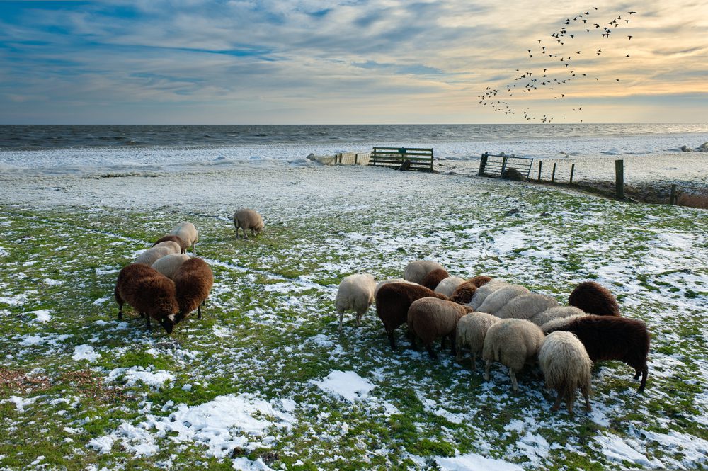 Met vrieskou en sneeuw hebben – gezonde – schapen geen enkel probleem. Dus kom maar op met die mooie sneeuwplaatjes! Schapen in de sneeuw: