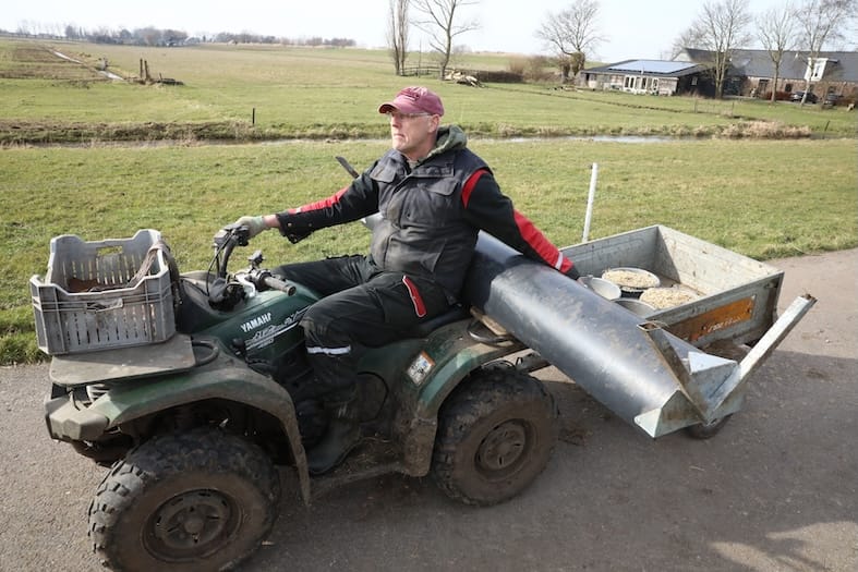 “Het beste gras is altijd voor de melkkoeien”, benadrukt de veehouder zijn voerstrategie. Aangezien hij weidegang hanteert, geldt die keuze zowel voor de begrazing als het ruwvoer. “De koeien rouleren ’s zomers over de huiskavel van zo’n 47 hectare en ’s winters op stal krijgen ze eerste snee kuilgras. De rest is grotendeels voor de schapen en het jongvee.” En ook daar is voldoende van. Een groot deel van de polder is namelijk in handen van Natuurmonumenten. Ze hebben er een weidevogelbestemming aan gegeven. Dat betekent dat weilanden verschraald moeten worden en het waterpeil verhoogd is in het broedseizoen.